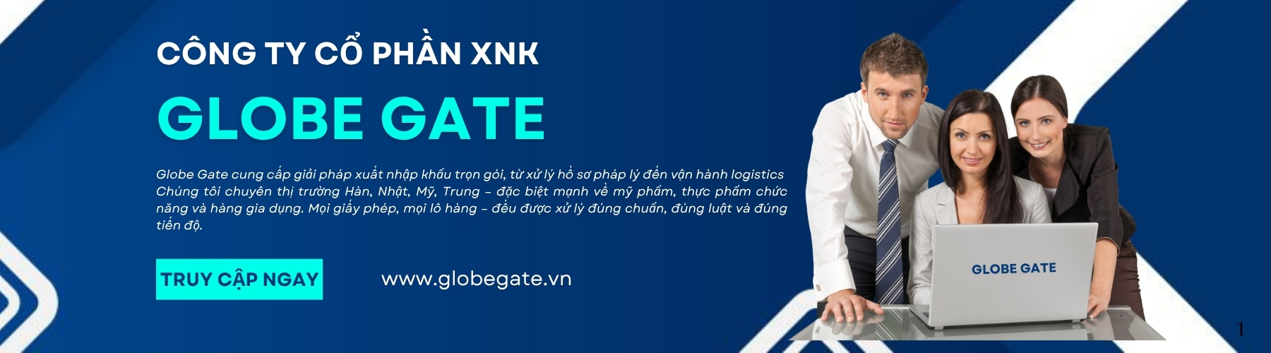 Công ty CP XNK Globe Gate chuyên xuất nhập khẩu hàng hóa từ Hàn, Nhật, Mỹ, Trung Quốc. Nhận làm hồ sơ công bố sản phẩm, xin giấy phép nhập khẩu mỹ phẩm, thực phẩm chức năng, đồ gia dụng – uy tín, nhanh gọn, đúng chuẩn pháp lý.